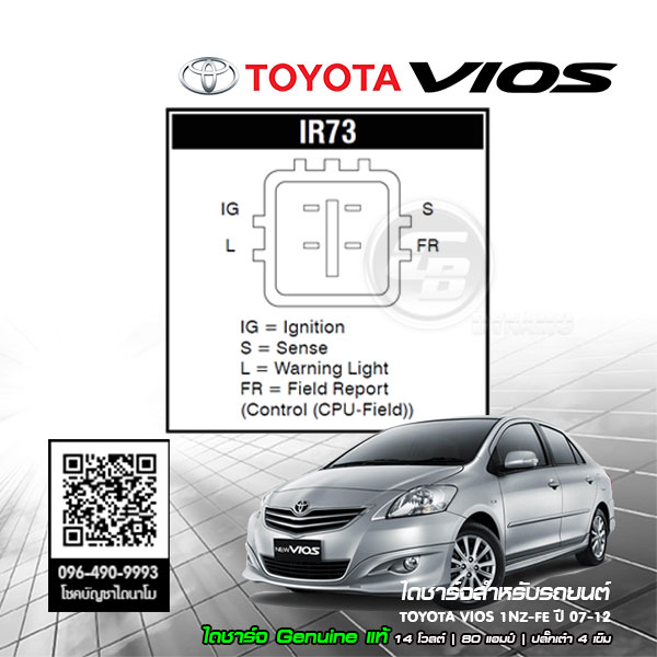 รับประกัน ไดชาร์จ VIOS 07-12 Genuine แท้ โดยโรงงานประกอบไทย |